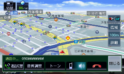 :- プライベート通話(携帯電話)とハンズフリー通話を切り替えます。