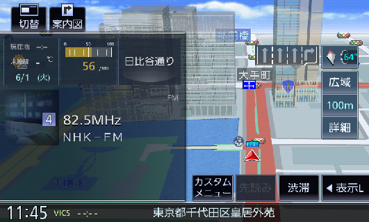 - 現在地図の上に、INFO/AV情報を表示する画面に戻ります。