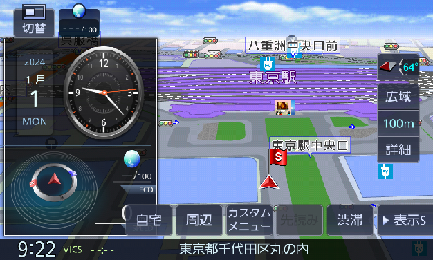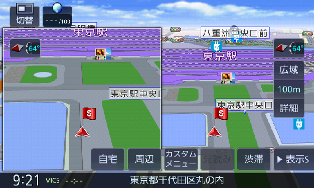 - 現在地図の上に異なる縮尺の地図子画面を表示します。