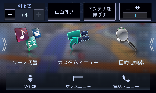 - 情報・設定画面、ソース切替画面、目的地検索画面は、メニュー画面からフリックまたはドラッグで表示することもできます。