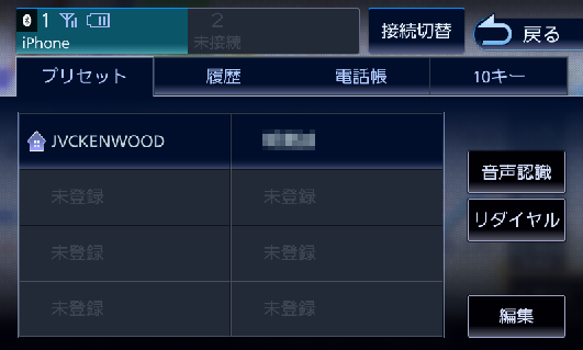 | 電話メニュー画面 電話(Bluetooth ハンズフリー)メニュー画面を表示します。ハンズフリーを使う